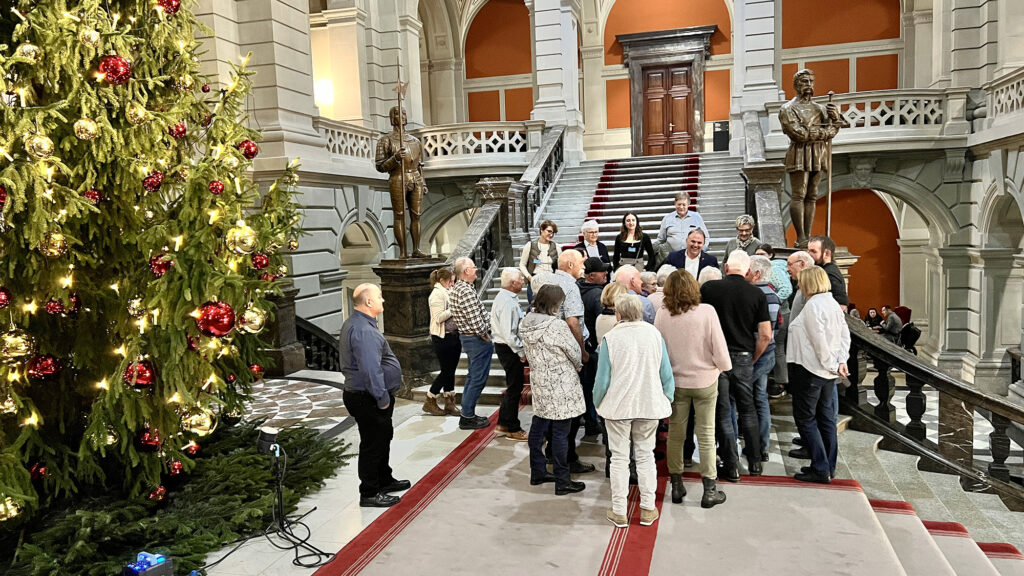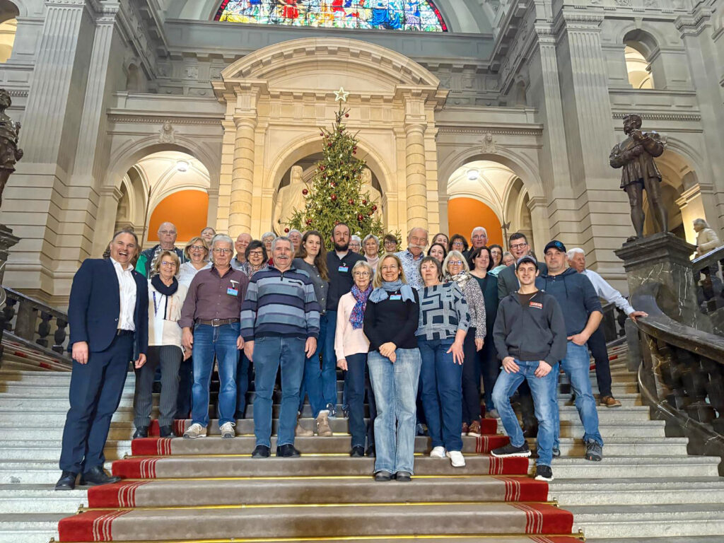 Um 7.10 Uhr traf sich die Reisegruppe bei der Kirche Trachslau zur Abfahrt. Insgesamt 32 Mit- und Nichtmitglieder folgten der Einladung. Nach weiteren Zustiegen – unter anderem in Wollerau – führte die Fahrt ohne nennenswerte Staus Richtung Bundesstadt. Gegen 10.15 Uhr erreichte die Gruppe das Bundeshaus.